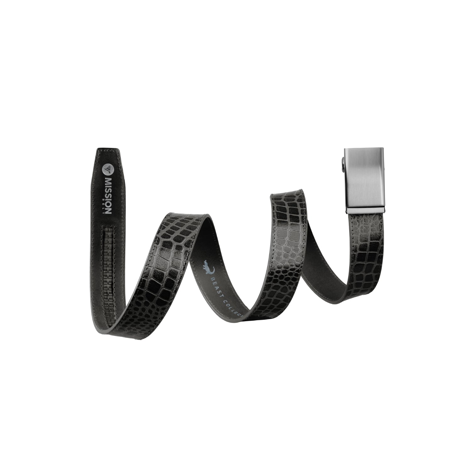 Meet The Beast Collection—no hunting permit required. These animal-skin-embossed leather belts bring apex energy without the whole "wrestling-a-crocodile" lifestyle choice. Same Mission Belt muscle, same no-BS ratchet fit, now dressed in textures that look like they could bite back. It's refined, a little reckless, and built for people who prefer their style with teeth. Clean enough for the office. Wild enough for after. Proceed accordingly.