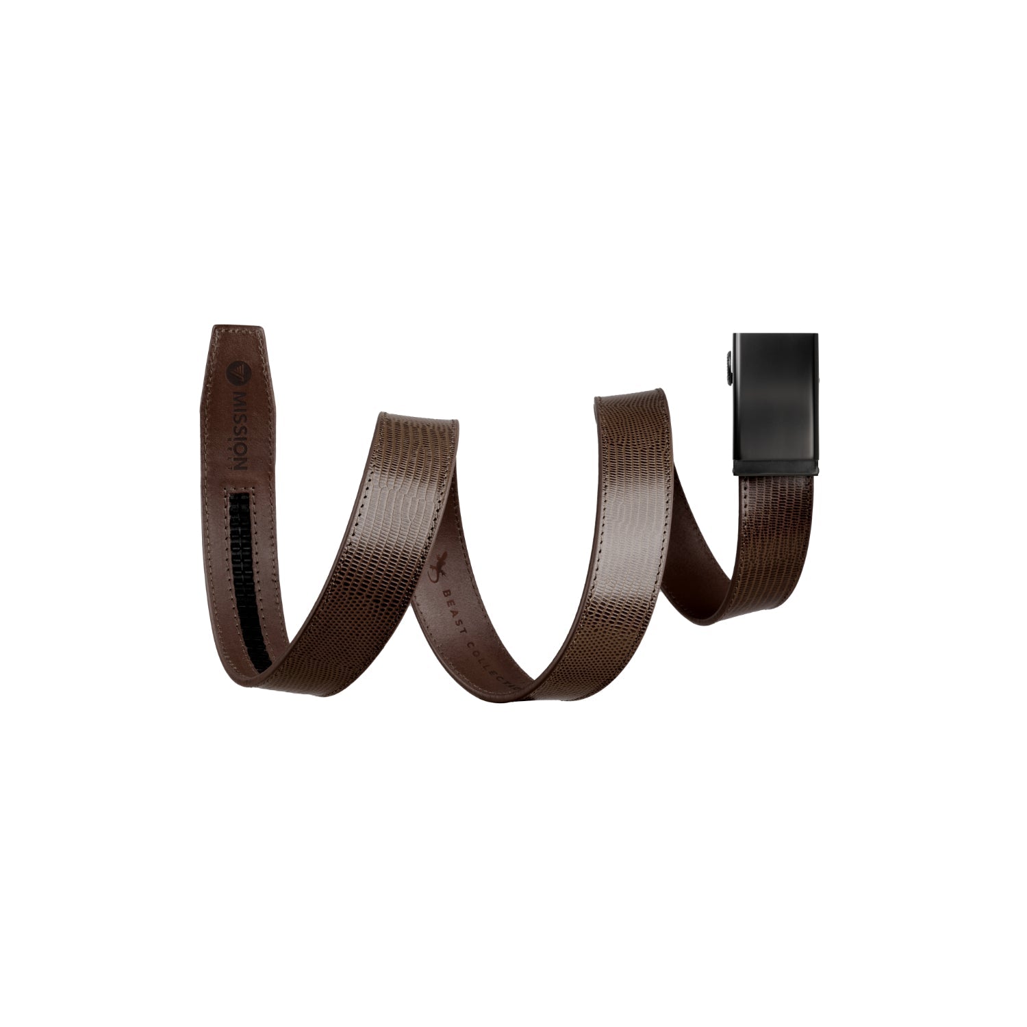 Meet The Beast Collection—no hunting permit required. These animal-skin-embossed leather belts bring apex energy without the whole "wrestling-a-crocodile" lifestyle choice. Same Mission Belt muscle, same no-BS ratchet fit, now dressed in textures that look like they could bite back. It's refined, a little reckless, and built for people who prefer their style with teeth. Clean enough for the office. Wild enough for after. Proceed accordingly.